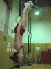 when you swing, you arent bending at the hips enough, you are kind of swinging at the same time as you drop your shoulders to the pole. Think about swinging until your (straight) trail leg hits your top hand before your start dropping your shoulders. This isnt actually what will happen unless you are incredibly flexible, but it will help you visualize what should happen. Second, which may be cause by the first, you arent coming back far enough on the pole. This is why everytime the pole recoils it shoots your feet horizontally not vertically. Work on staying farther back on the pole and waiting there for the pole to release. You should be staying on the pole a lot longer. Nice jumps though, your swing looks good coming under your body. You can go very high on that pole, i held at 12'9 on a 14 foot pole and cleared 14'6, so if you stay back long enough it will throw you!Kolber wrote:http://youtube.com/watch?v=3z611nbtzQk&search=kolb